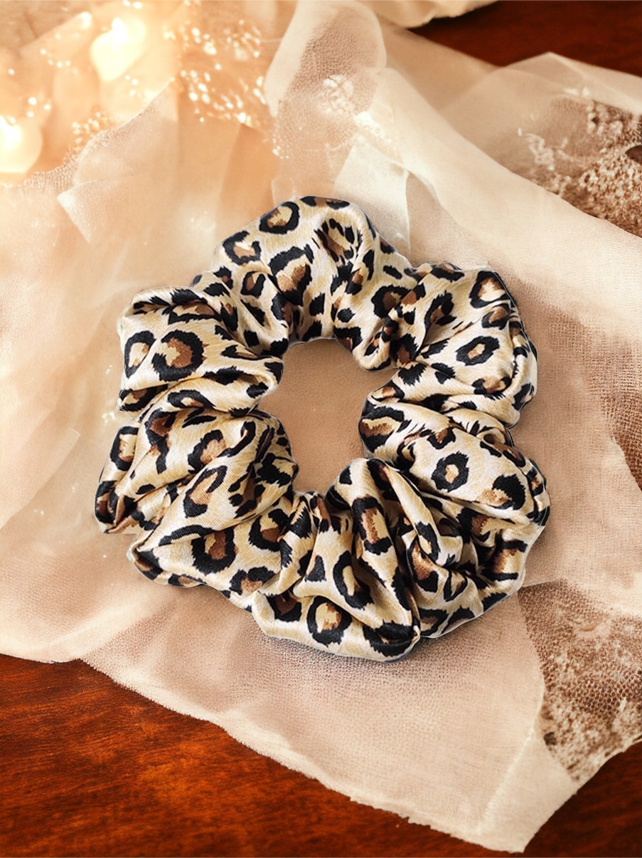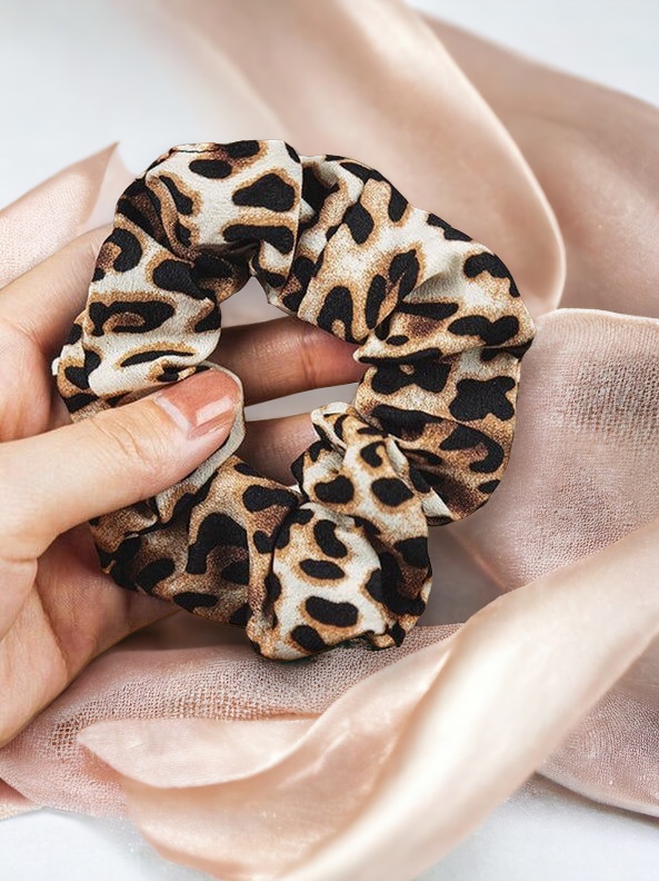 Fierce leopard print, scrunchie, stylish accessory, fashion, hair accessories