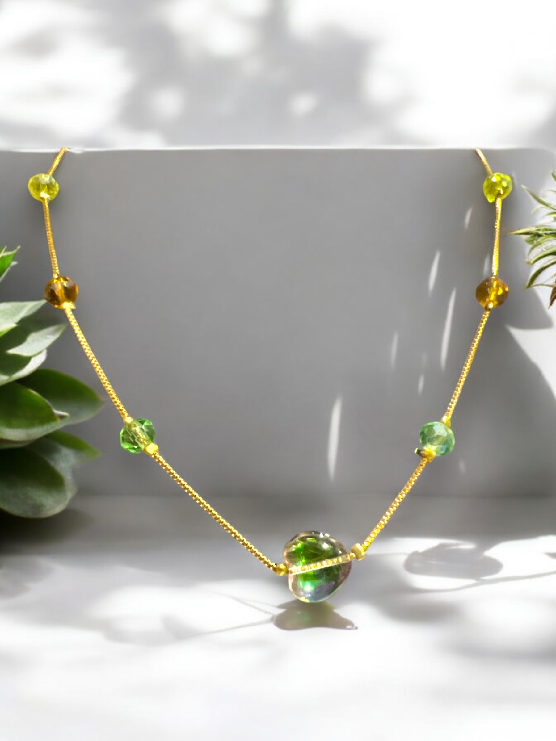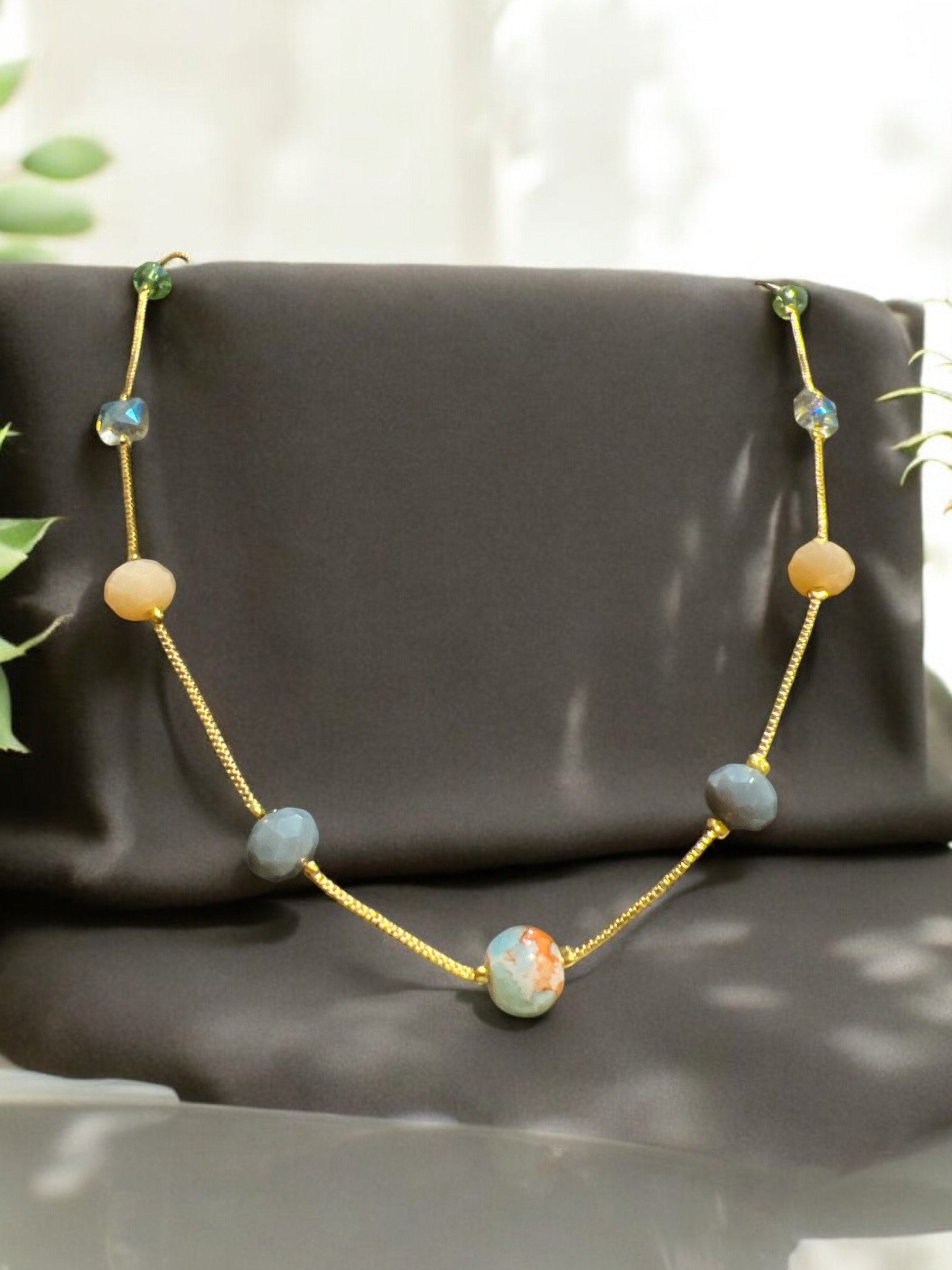 Jewels Of Joy Chain is crafted from vibrant stones, each carefully selected for its rich colors and unique textures. The combination of different stones creates a beautiful contrast, making the necklace a standout piece for any outfit. The natural variations in the stones add character and charm, reflecting light in a way that captures attention. Whether worn for a casual outing or a special occasion, this necklace is sure to enhance your look and showcase your personal style.