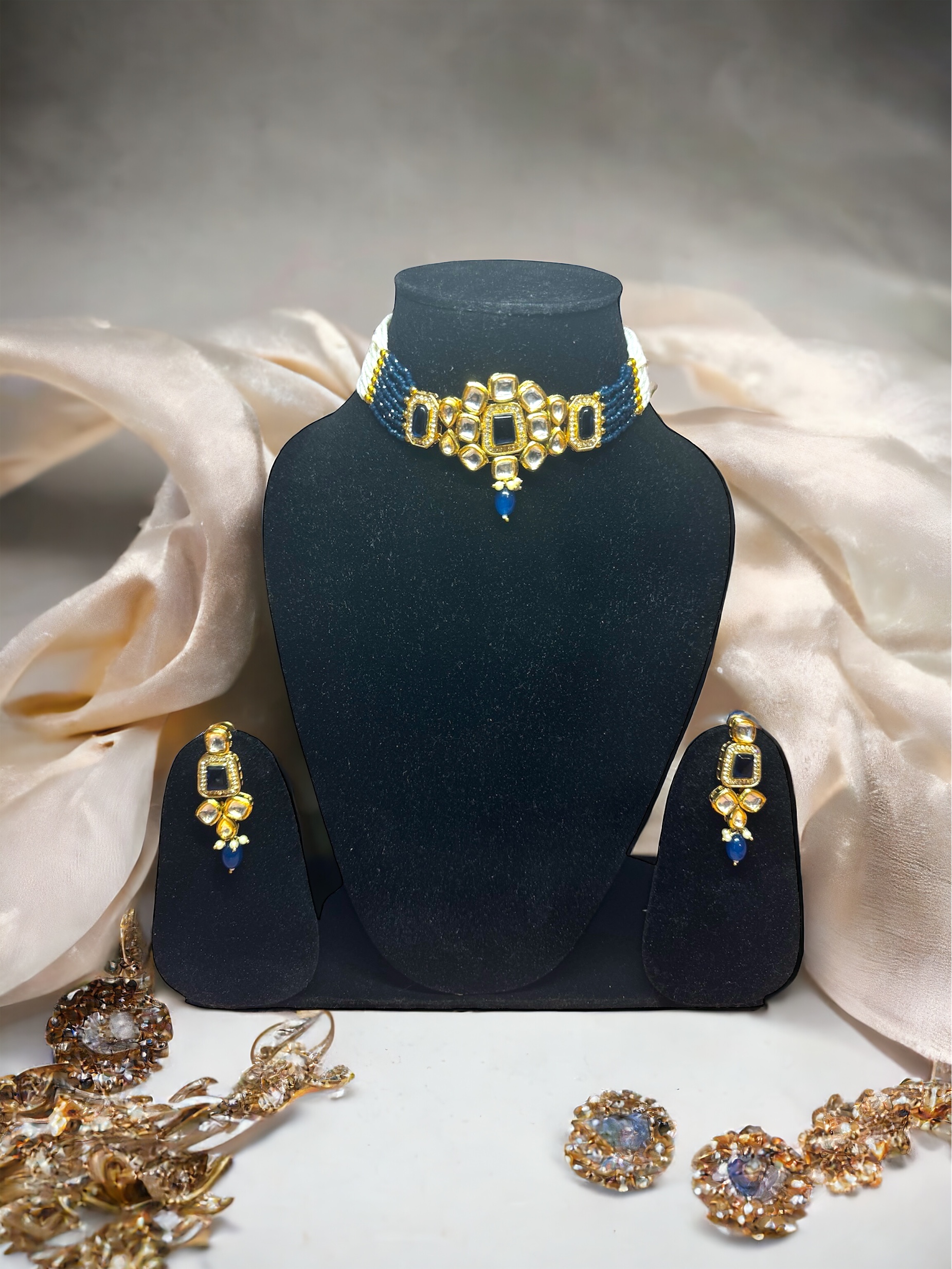 Indulge in timeless elegance with our Midnight Lace Choker, adorned with a captivating array of colourful stones. Featuring cubic stones and shimmering white beads, this majestic necklace exudes sophistication and charm. The traditional design is elevated by the inclusion of royal blue and pink hues, adding a touch of regal allure. Crafted for versatility, it’s an adjustable necklace that effortlessly complements any ensemble.
