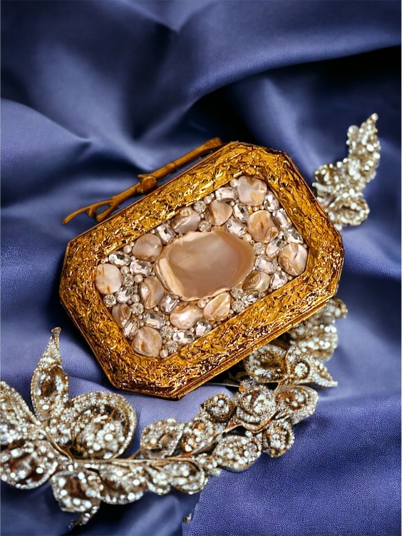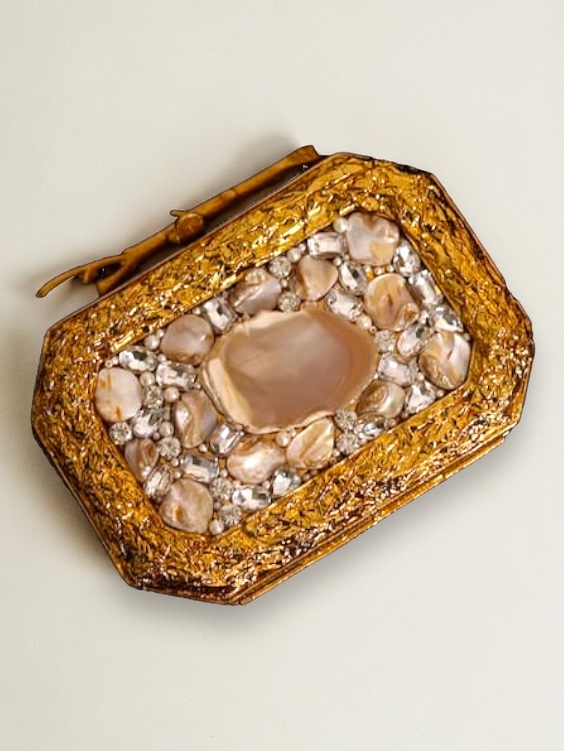 | Clutches | Seashells, Long sling chain, Cash pocket, Resin Clutch, Pearls, Stones, Mother of pearls |
