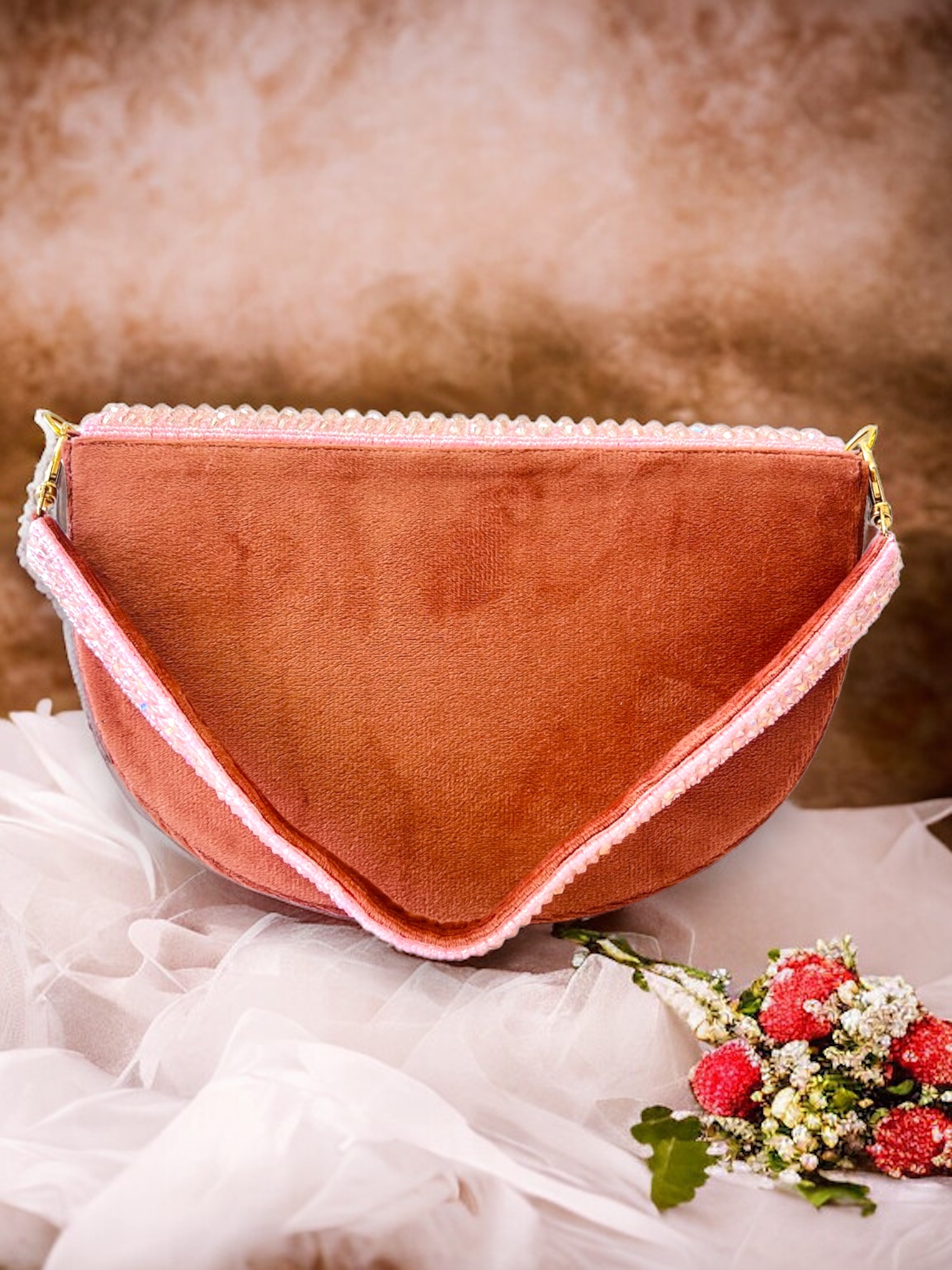 Pink Moon Bag in the shape of a crescent moon. It’s like having a little slice of the night sky right at your fingertips! The material is so soft and velvety, you just want to touch it all day long. And the details on this bag are just precious! You’ve got little stars and moons embroidered on it, giving it that extra touch of whimsy. It’s the kind of bag that will make you feel like you’re floating on cloud nine every time you wear it.