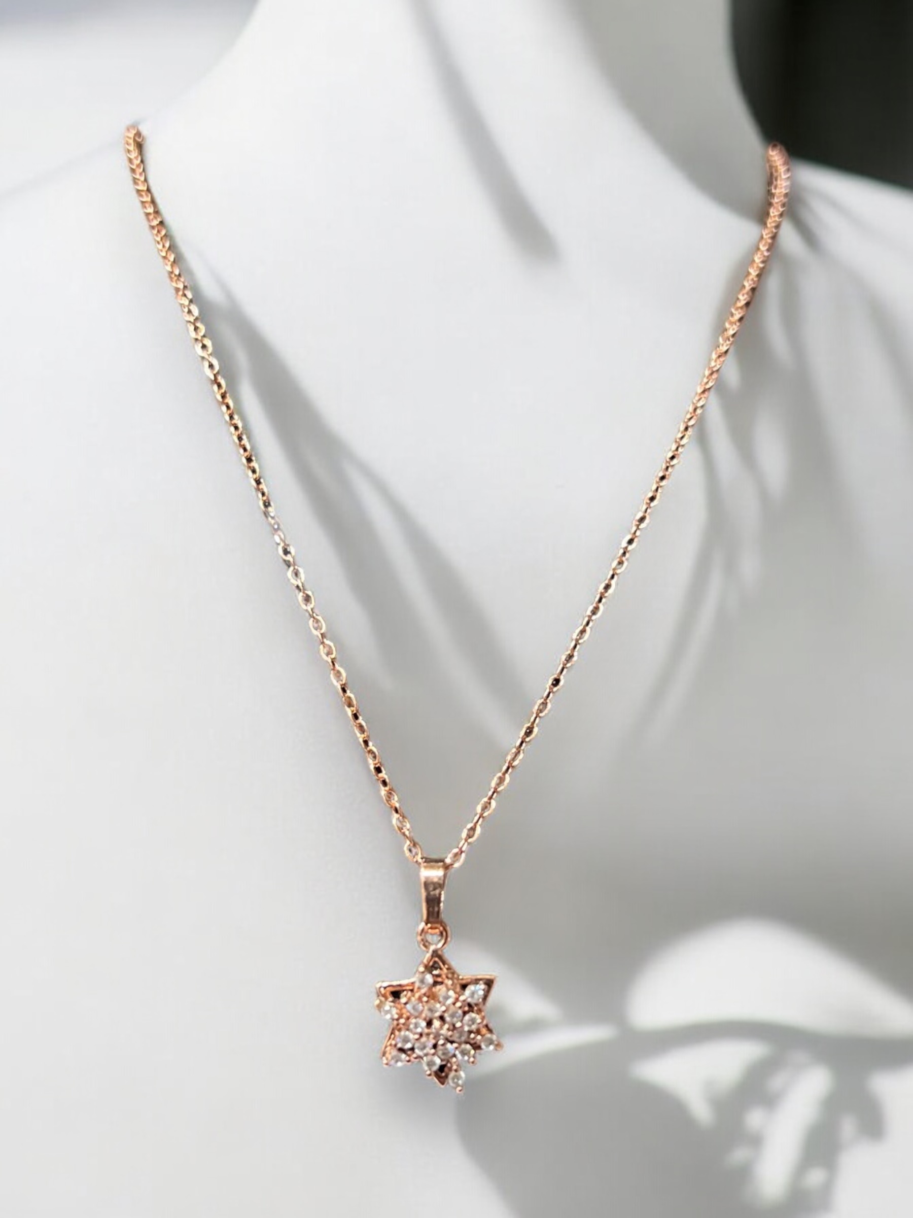 Star spinner chain features a floral design that radiates elegance and charm. Adorning it is a unique flower pendant that spins gracefully, reminiscent of a captivating spinner. This piece beautifully merges sophistication with a playful twist, making it a standout accessory.